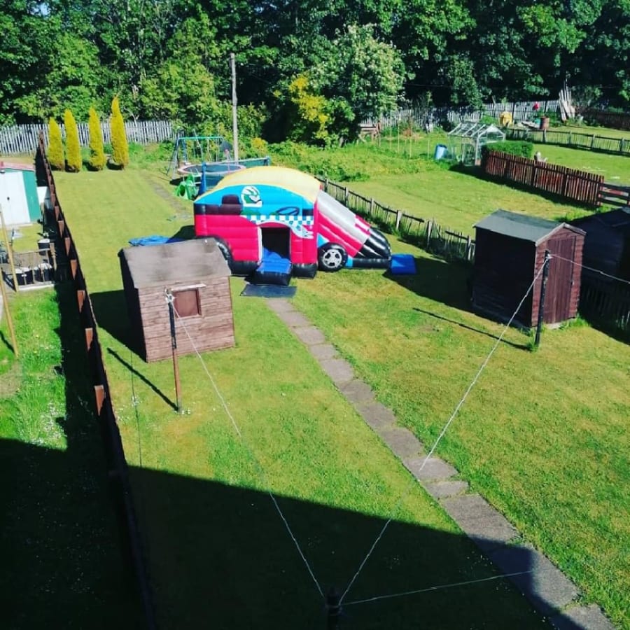 We can only set up bouncy castles and slides on natural grass or indoors.