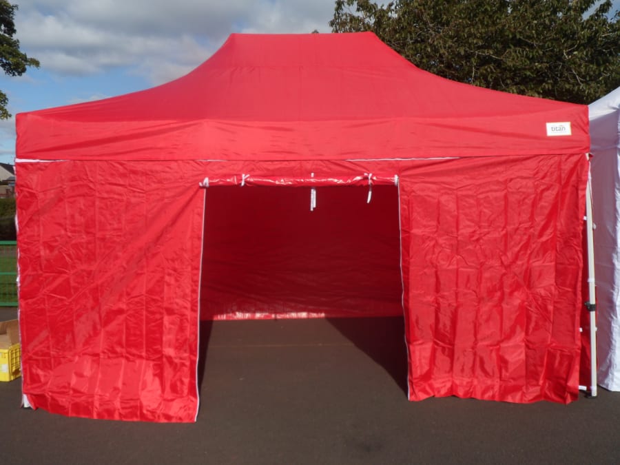 Please note you will get the RED marquee in the pictures with the pointed roof and the marquee will come with side walls