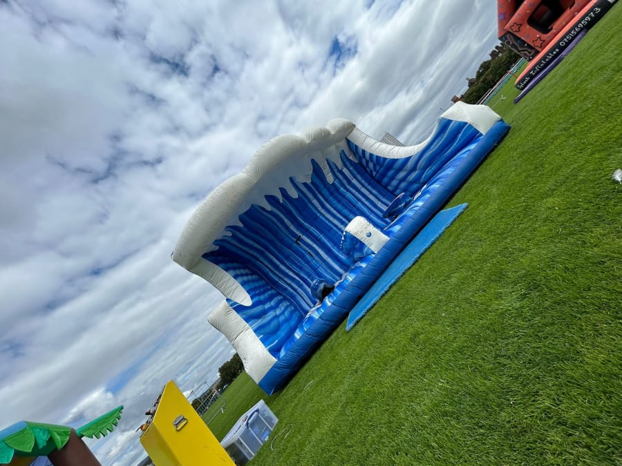The surfboards simulate at the same time and the winner is the last man or woman standing!