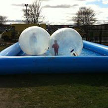 Aqua Balls/ Zorb Balls/ Water Walkers Make a splash at your event with Our 7m x 7m pool with 3 Aqua Balls (also known as Zorbs and Water Walkers) running at a time. Enjoy the experience of walking on water without getting wet! Suitable from 4 years plus. Each hire comes with one of our fully trained operator so all you have to do is enjoy the fun! For this item, we need local access to water mains supply. Perfect for events and we have also provided this service for private parties on request! Prices quoted individually
