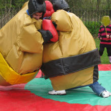 Please tell us which set you would like. These are superb for adult parties or Hen and Stag nights and corporate events. The sumo wrestling suits come with head and neck guards and also a sumo ring mat.