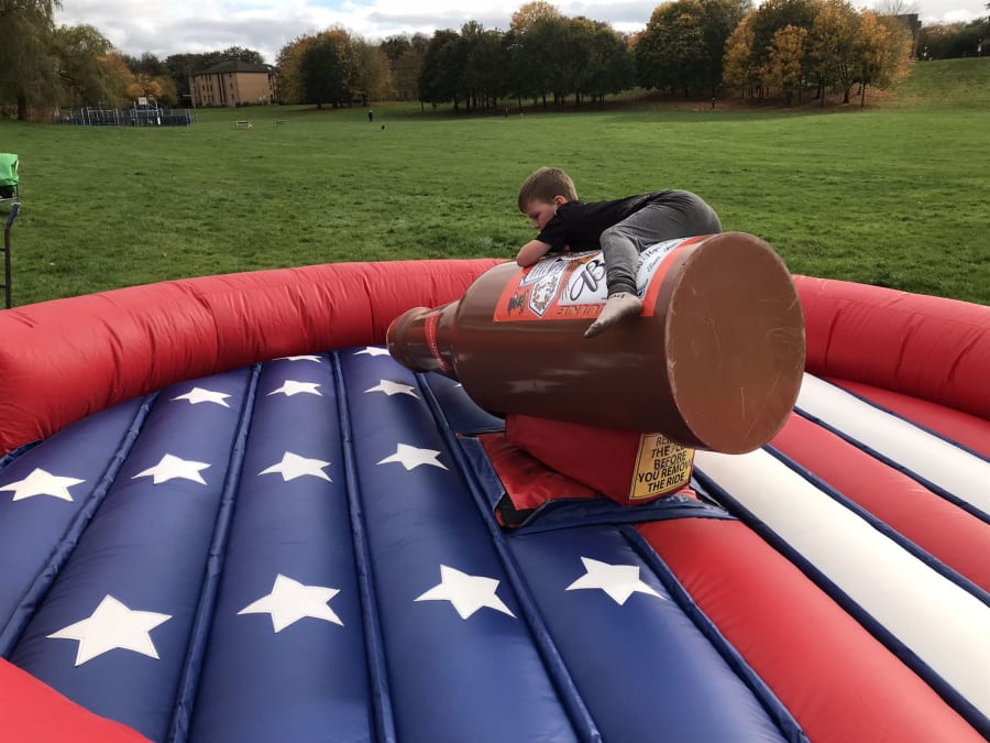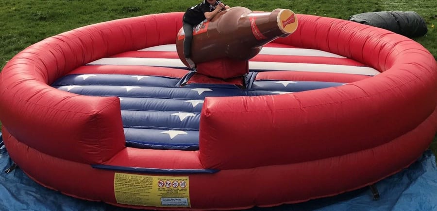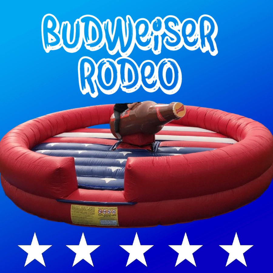 The Budweiser Rodeo is a brilliant inflatable for you to show off to your friends! It has an American flag on the base design to get you in the theme! This is Really popular for stag and hen parties, college and university events as well as corporate events.