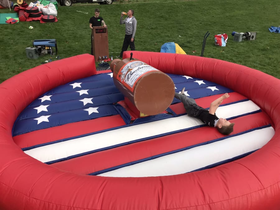 Budweiser Bottle Rodeo within inflatable surround.