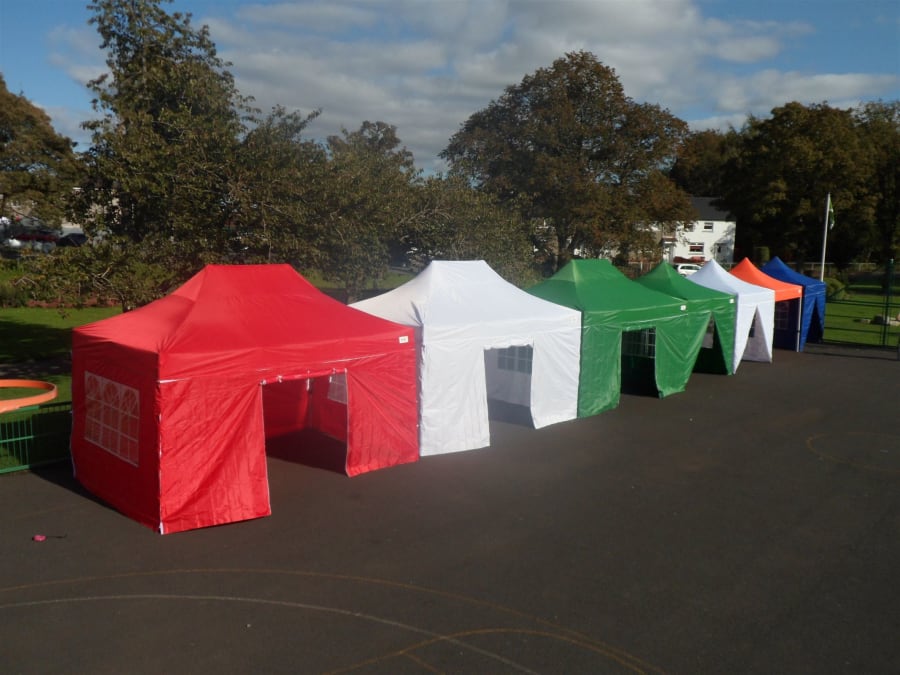 Please note you will get the white marquee in the pictures with the double pointed roof and the marquee will come with side walls
