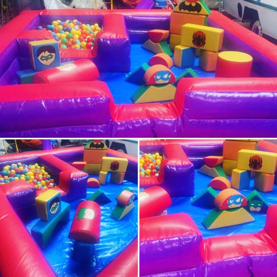 This is a lovely 10 x 10ft Arena filled with soft play shapes and it has an internal ball pool.