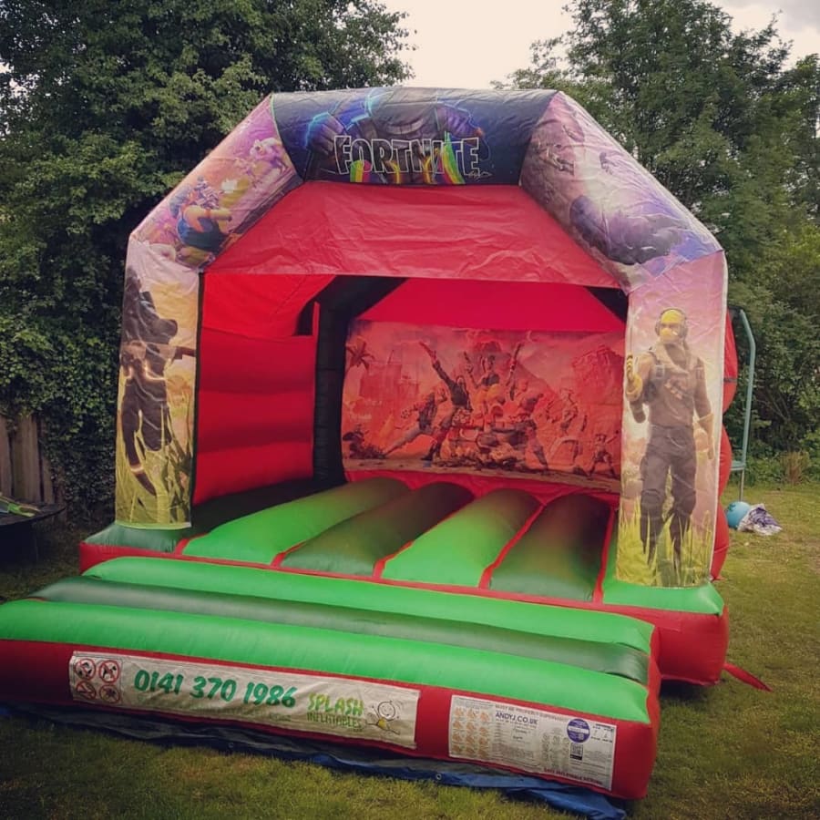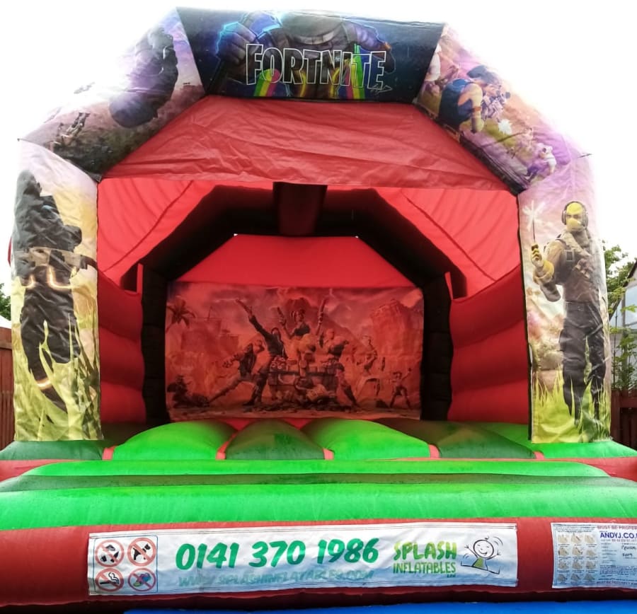 Lovely Fortnite Bouncy Castle which has a roof attached.