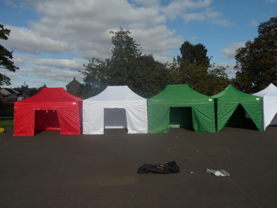 Please note you will get the GREEN marquee in the pictures with the pointed roof and the marquee will come with side walls