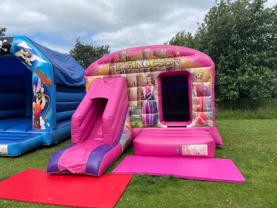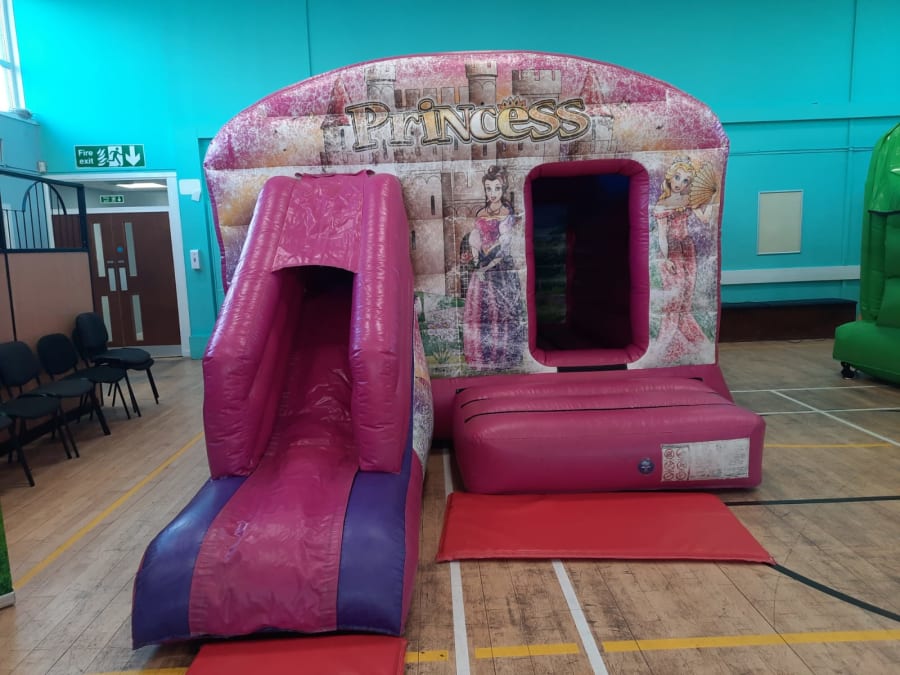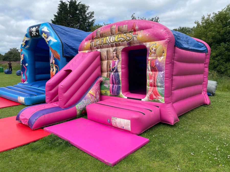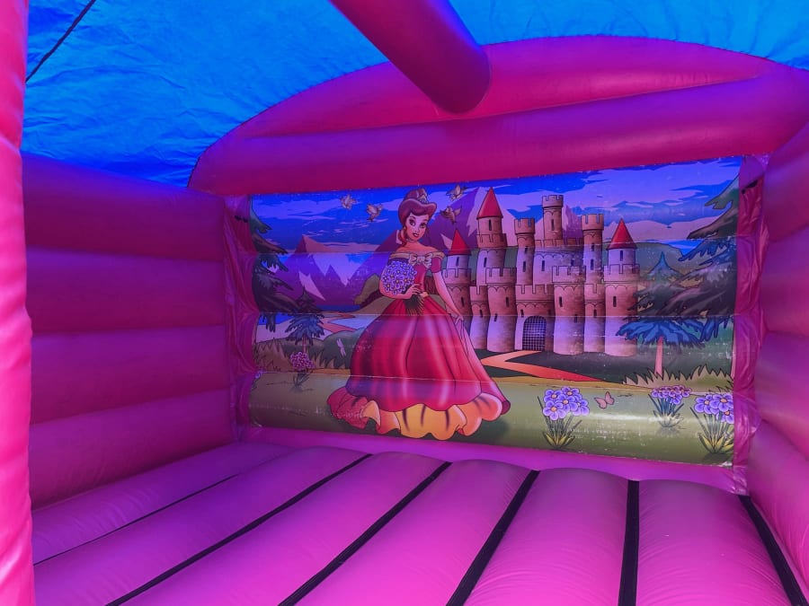 This castle is in good condition although the artwork has been slightly bleached from the sun. This castle has a valid safety test and in great working order.