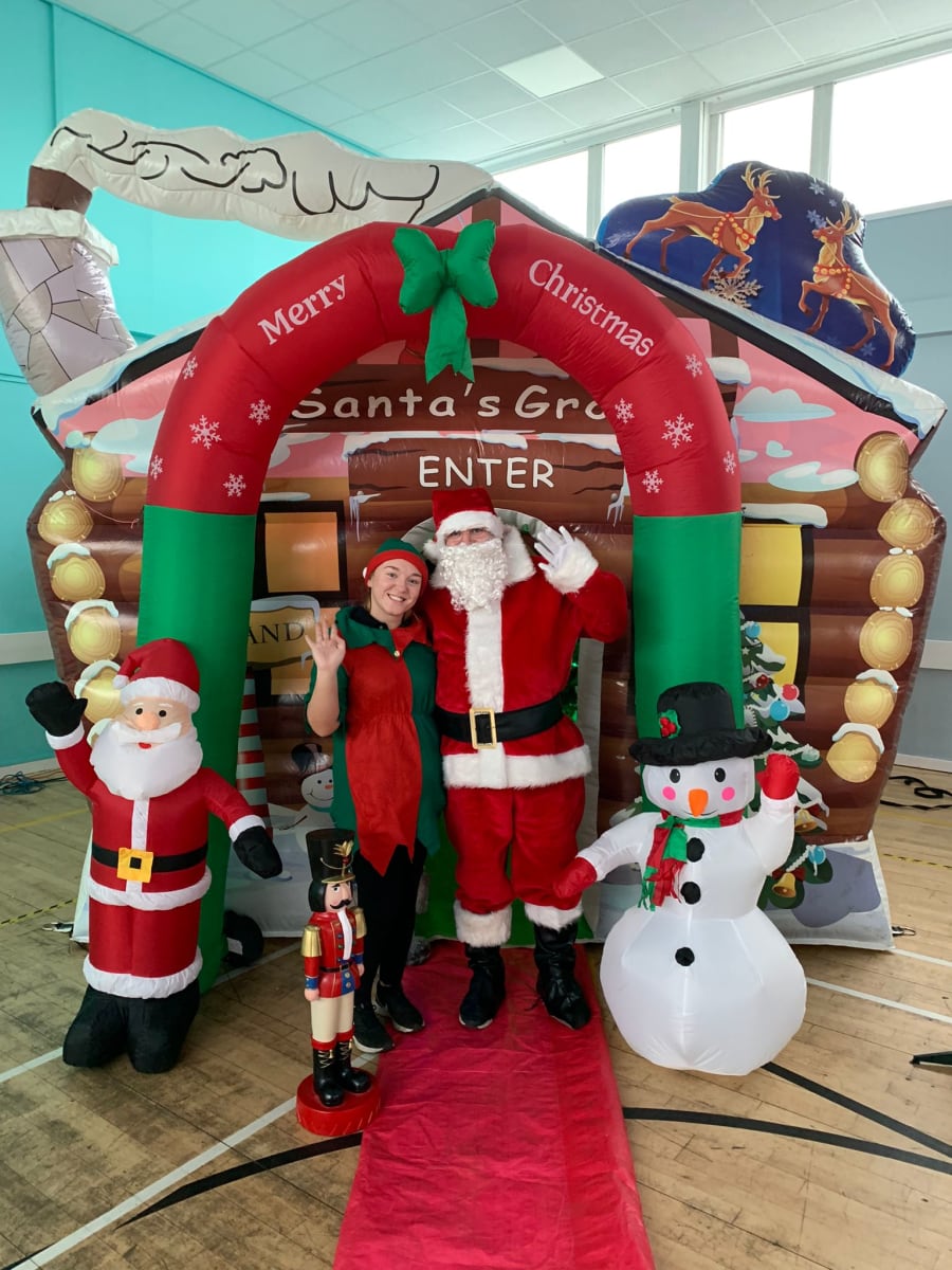The Grotto comes with Christmas tree, lights, chair and some props and even Christmas music! All you need to do is provide is the Santa and Elfs and any gifts you want to give away!