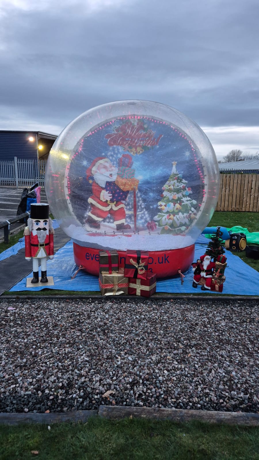 Please note that as people are coming in and out of the snow globe, some of the artificial snow comes out and can be hard to sweep this up outdoors or indoors. We do try and do our best to ensure that only limited amounts leave the globe. In the case that some snow does exit the globe onto your venue floor surface, you may be required to clean some of this this up yourself afterwards.