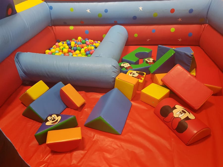 It comes with soft play shapes and balls in the pool.