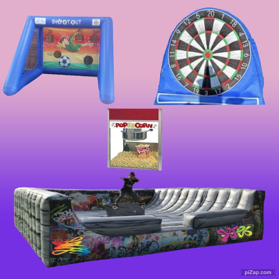 The Skate Park Rodeo is suitable for children over the height of 1.2m and all the other items are suitable for all ages right up to high school kids
